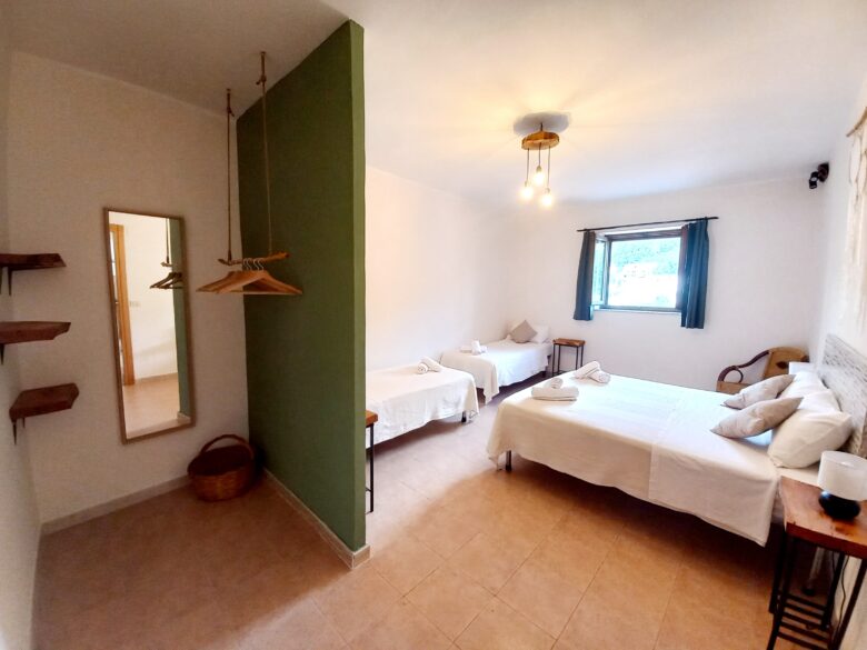 Camera doppia con letti singoli dotata set di cortesia e bagno privato con doccia e asciugacapelli. Camera doppia dotata di ingresso privato, pavimento piastrellato e riscaldamento. L’unità offre 2 posti letto: 1 letto una piazza e mezzo e un letto singolo.